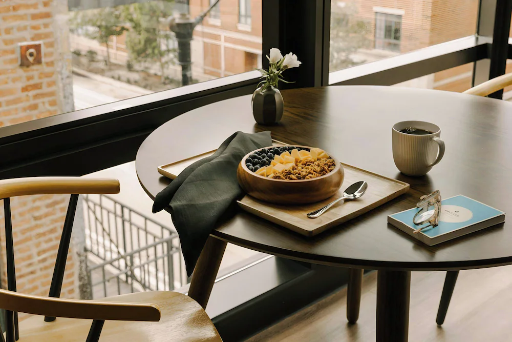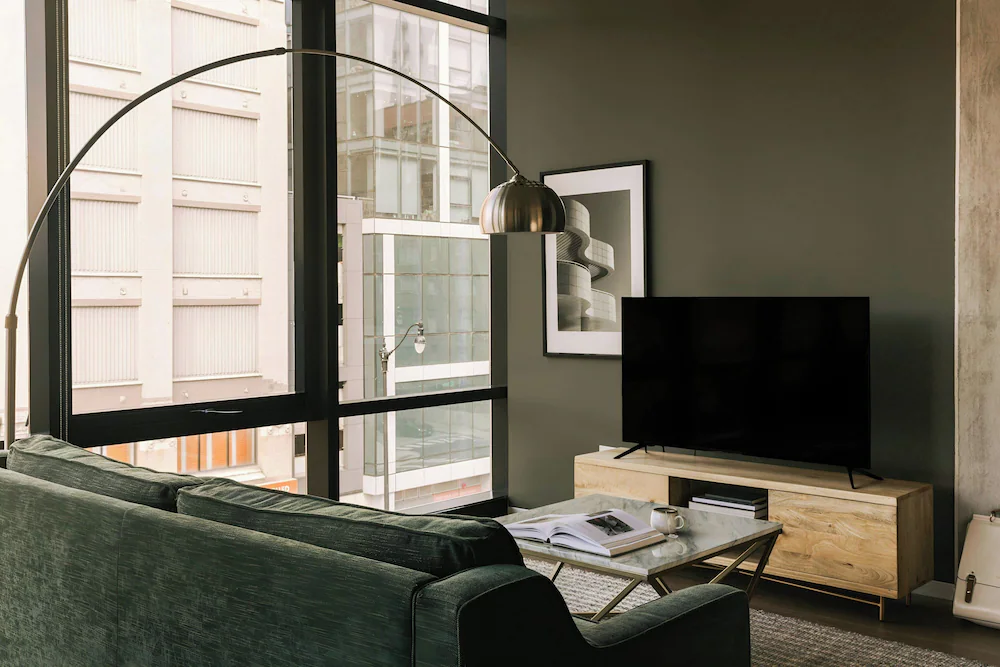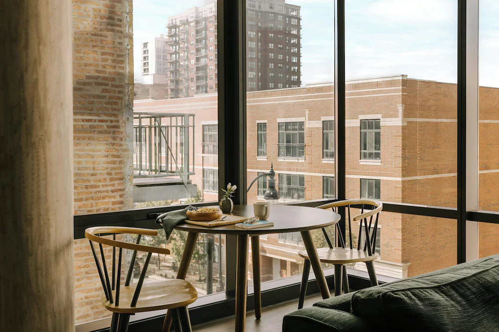 The architecture and interior design of Sonder South Wabash reflect the industrial heritage of the surrounding district. The units are characterized by an “industrial chic” aesthetic that features exposed concrete ceilings and ductwork, giving the spaces a raw and authentic urban feel. These rougher textures are balanced by floor to ceiling windows that allow for substantial natural light and offer views of the city skyline or the inner courtyard.