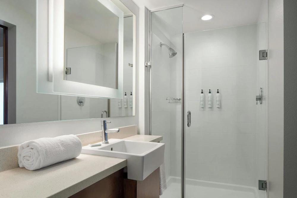 Parking is the first item I check because it sets the tone for everything else. A SpringHill Suites is usually designed with standard guest parking, and this location typically fits that pattern. It’s not the kind of place where you feel like you’re in the way just because you showed up with a work van. If your group includes trailers or larger trucks, you still need to confirm what the property allows and where overflow goes, but you’re starting from a more practical setup than you get at many downtown hotels.