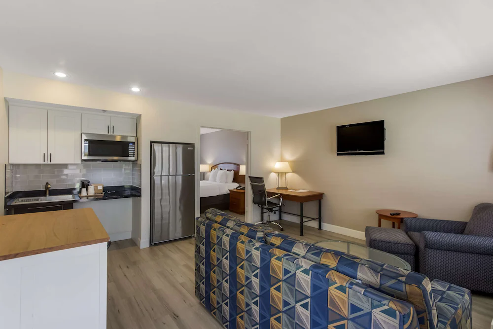 What truly sets this property apart for extended stays is its specially designed extended-stay suites that come furnished with a full kitchenette, sofa and living room furniture, and a cooking stove. These thoughtfully appointed suites transform your temporary lodging into a functional living space where you can prepare your own meals, entertain guests, and maintain your normal routines. Every room is equipped with a refrigerator, microwave, coffee and tea maker, iron and ironing board, spacious closet area, flat-screen TV with premium cable channels, and a dedicated worktable area, essential amenities for anyone settling in for more than just a few nights.