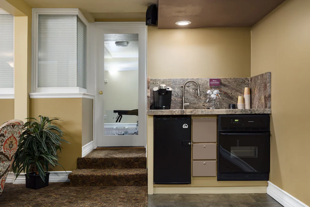 Because many Conference trips involve early mornings, long days on foot, and quick resets between sessions, the in-room setup becomes the main advantage. Every unit is equipped with a full kitchen and the essentials to actually use it, including cookware and dishware. That makes it easier to manage breakfast timing, pack snacks, keep meals simple, and avoid scrambling for restaurant seating when crowds spike. For groups traveling with seniors, kids, or mixed schedules, having a kitchen and dining space in the room helps the trip stay organized.