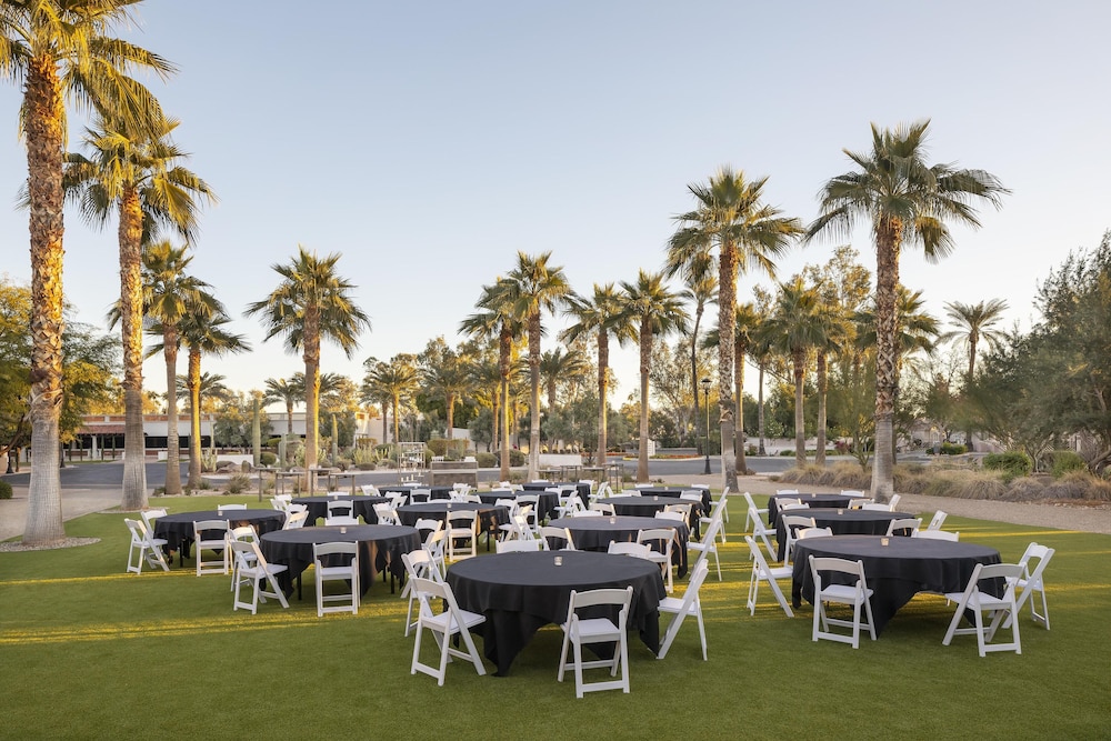 The resort offers 85,000 square feet of event space , making it one of the most substantial conference properties in the Scottsdale market. Three ballrooms, as well as private and semi-private banquet rooms, are available for groups and parties. Event space ranges from open-air plazas to airy ballrooms to dedicated meeting rooms and a pool court, giving planners a broad mix of indoor and outdoor configurations. The beautifully landscaped grounds and tranquil patios accommodate dream weddings, receptions, corporate theme parties, and formal private events.