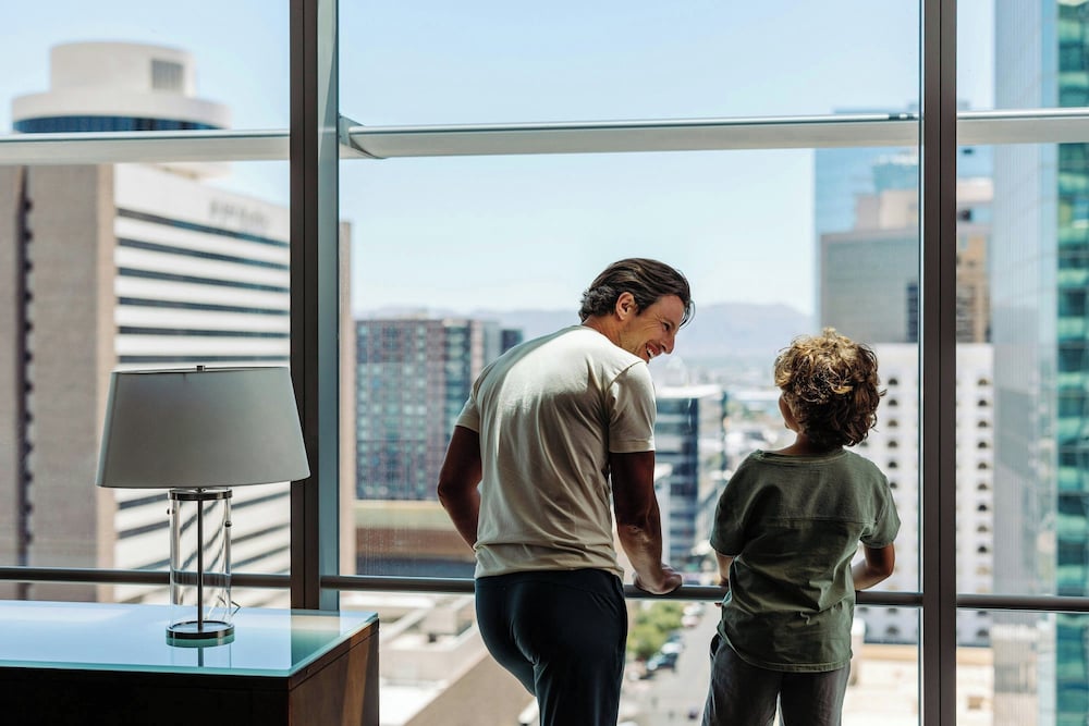 The Westin Phoenix Downtown puts 469 rooms in the middle of downtown Phoenix, on the Arizona State University downtown campus at 333 North Central Avenue. The property is known for its oversized guest rooms, with floor-to-ceiling windows delivering panoramic city views in every room, and its location directly across from the light rail stop. Jacy & Dakota’s, the hotel’s indoor/outdoor restaurant, serves farm-to-table American cuisine for breakfast, brunch, lunch, and dinner, with a contemporary Sonoran patio. Phoenix Sky Harbor International Airport is approximately 3.9 miles away, and Chase Field is within a five-minute drive.