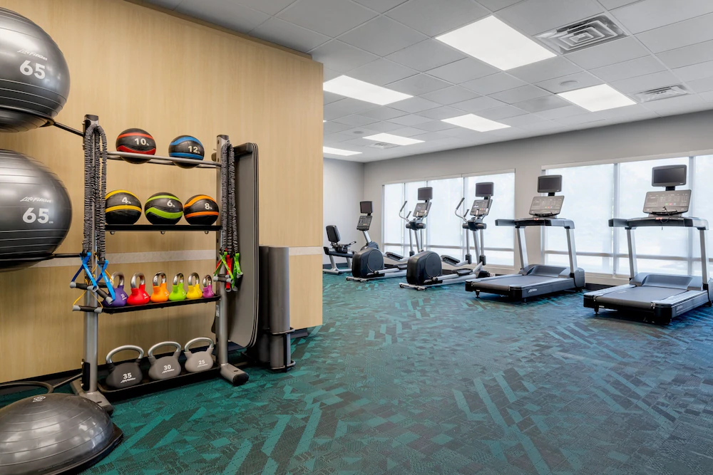 Daily logistics are straightforward. The complimentary breakfast covers hot and cold items that get you out the door on time. A 24-hour market stocks snacks, drinks, and heat-and-eat options for nights when you want to keep it simple. Guest laundry facilities make it easy to set a predictable midweek wash day, and the fitness room supports treadmill, bike, and light strength sessions to maintain conditioning between training blocks. The outdoor pool offers a quick cooldown in warmer months. Self-parking is on site, and nearby retail nodes put grocery stores, pharmacies, and big-box essentials within a short drive.