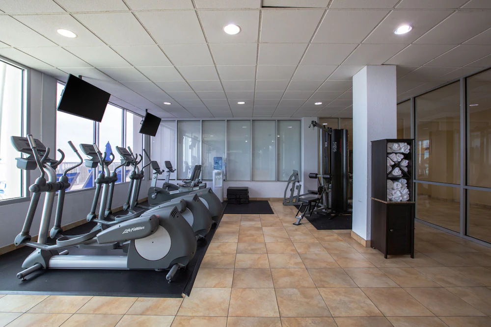Elevators and interior corridors that make luggage, coolers, and equipment easier to handle