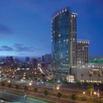 Embracing the classic, laid-back energy of Southern California, the Wyndham San Diego Bayside offers an unmatched waterfront location for large-scale corporate functions, trade shows, and association conferences. With 600 guest rooms and suites spread across two towers, this property has the significant scale required to host substantial national sales meetings and multi-day expos. Its position on the San Diego Bay waterfront is a primary draw, placing attendees directly across from the B Street Cruise Ship Terminal and offering a “front-row” seat to the harbor.