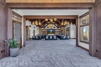 Chanterelle Ballroom at Juniper Preserve: Elegant Indoor-Outdoor Event Venue with Floor-to-Ceiling Windows in Central Oregon The Chanterelle Ballroom at Juniper Preserve is an elegant event venue designed to inspire, featuring dramatic floor-to-ceiling windows, soaring vaulted ceilings, and abundant natural light. This spacious ballroom offers seamless indoor-outdoor flow with a wrap-around deck and flexible event space, perfect for weddings, galas, conferences, and corporate meetings. Fully AV compatible, the Chanterelle Ballroom accommodates both intimate gatherings and large celebrations, all set against the stunning backdrop of Central Oregon’s high desert landscape. Experience sophisticated design, state-of-the-art amenities, and breathtaking views at Juniper Preserve’s premier indoor-outdoor event destination.