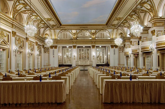 The Rostrum offers a refined setting for dining events with its opulent ballroom atmosphere. Accommodating up to 60 guests, this space provides an alternative to the hotel's larger ballrooms while maintaining the grandeur that defines Fairmont Copley Plaza's event offerings.