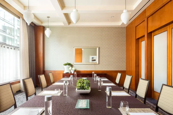 The Avery Room offers a versatile meeting space with natural light streaming through expansive windows. At 427 square feet, this adaptable venue accommodates up to 35 guests and transforms effortlessly between boardroom discussions and presentations. Among the hotel's most flexible spaces, it provides an ideal setting for focused work sessions and collaborative gatherings.