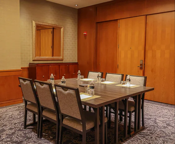 The Mason Room offers a private setting for focused meetings and small group discussions. With seating for up to 12 participants, this versatile space provides the flexibility to accommodate various meeting formats while maintaining the productive atmosphere essential for successful business gatherings.