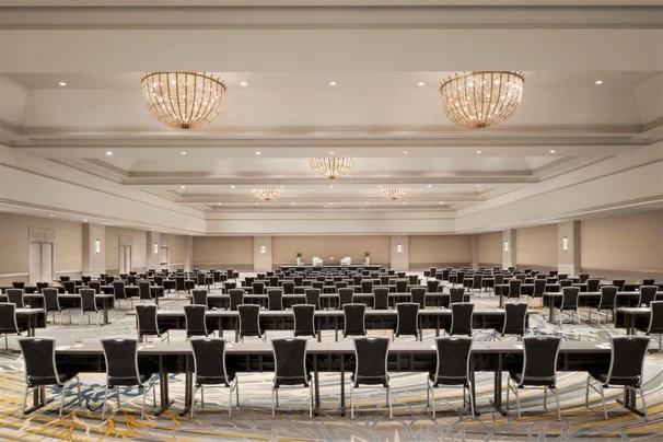 Imperial Ballroom is the hotel's largest and most versatile venue with 16,100 square feet of unobstructed space. This grand ballroom accommodates up to 2,000 guests and features a built-in audio-visual booth for seamless presentations. The space includes a 4,700 square foot pre-function area and convenient valet parking access.