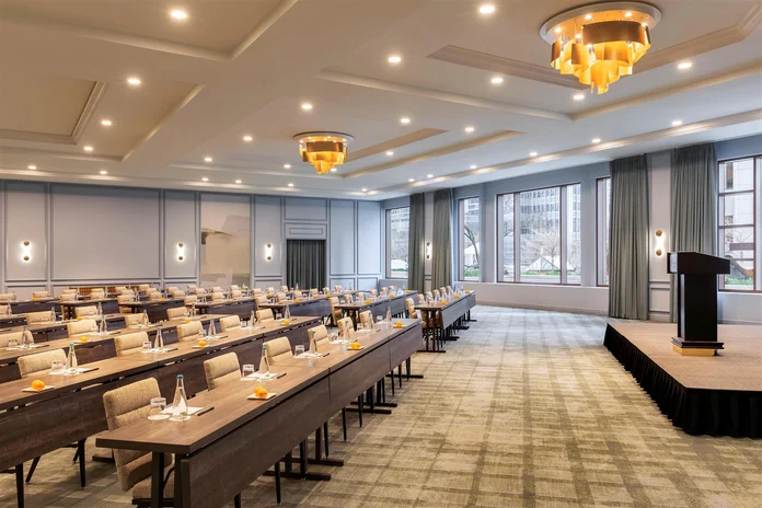 The newly renovated Millennium Room commands attention with its 4,900 square feet of meeting space bathed in natural light from three large bay windows. This third-largest venue in the hotel offers impressive versatility with 17-foot ceilings and capacity for up to 500 guests, making it ideal for everything from major conferences to formal dinners and receptions.