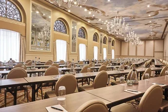 Grand Ballroom accommodates up to 800 guests and stands as the hotel's premier event space at 5,304 square feet. The room features exceptional versatility with the ability to divide into Grand Ballroom A and B for smaller functions, making it perfect for everything from large conferences and corporate dinners to wedding receptions.