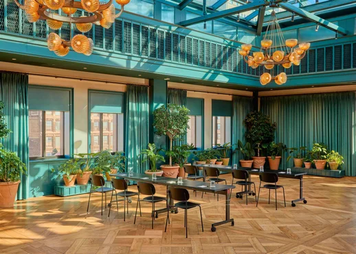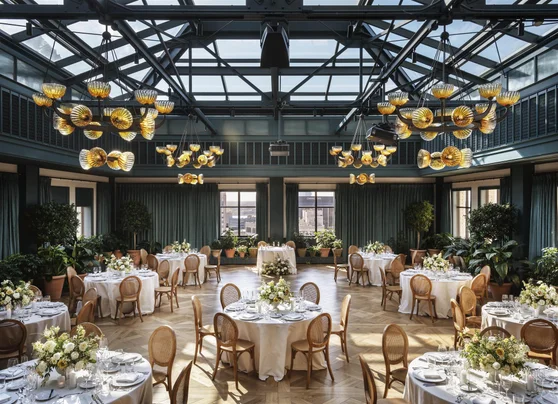 The Conservatory offers a unique ballroom experience with soaring glass ceilings that flood the space with natural light. Located on the 13th floor of the Book Building, this 2,700-square-foot venue accommodates up to 275 guests and transforms seamlessly from corporate conferences to grand celebrations.
