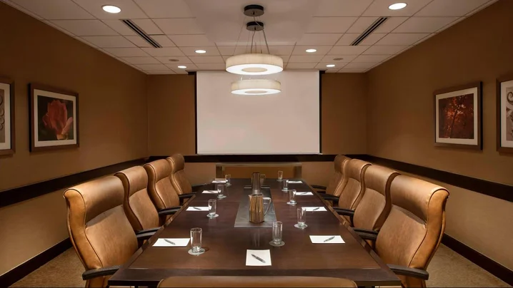 Baldwin Board Room provides an executive setting for focused discussions and strategic planning. With seating for up to 12 attendees around a central conference table, this boardroom creates an environment conducive to productive meetings and decision-making.