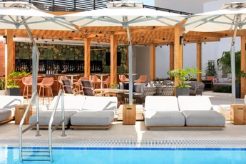 Escape at Roof Top Pool Deck elevates your event on the 8th floor with sweeping waterfront views and a stunning cityscape backdrop. This expansive 3,500 square foot rooftop venue features a sparkling pool and established restaurant bar, creating an unforgettable atmosphere for receptions and gatherings of up to 150 guests.