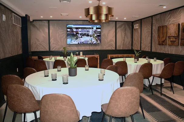 Inspired meetings and events take place in a 400 sq. ft. multi-functional space adjacent to La Fuga Restaurant & Bar. Natural light fills the space that looks out onto its own outdoor patio area, ensuring you won’t lose that laid-back vibe. Small meetings or intimate dinner parties are perfect for The Wayfarer Boardroom.