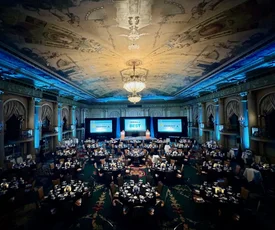 The Crystal Ballroom is a grand and iconic event space, offering approximately 6,300 square feet of richly detailed architecture and refined historic character. With a soaring 30‑foot hand‑painted ceiling, Austrian crystal chandeliers, and ornate balconies, the space radiates Old Hollywood elegance. Famous as “the birthplace of Oscar,” it's where the Academy of Motion Picture Arts and Sciences was founded and the Oscar statuette was reportedly sketched on a Biltmore napkin during that seminal banquet. Today, it accommodates up to 800 guests standing or 600 seated, making it ideal for elegant receptions, gala dinners, and large-scale ceremonies.