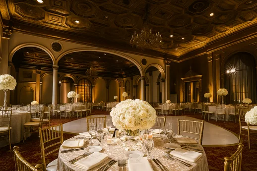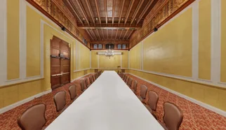 The Gold Room is a grand, split-level ballroom offering approximately 5,940 square feet of space. Featuring gold-coffered ceilings, rich wood paneling, and crystal chandeliers, it provides a dramatic and elegant setting for receptions, galas, or formal dinners. With a capacity of up to 350 guests, this historic room is ideal for events that demand both scale and sophistication.
