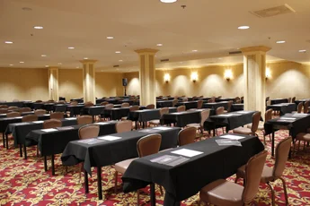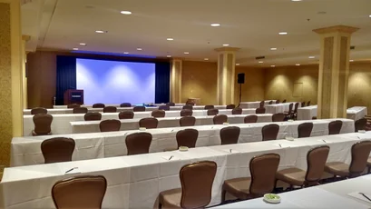The Heinsbergen Room is a prominent, mid-sized function space at The Biltmore, offering 4,758 sq ft of richly detailed meeting or reception area. Its interior is defined by luxurious accents, gold and red tones, column features, and tasteful wall sconces and includes a dedicated inset zone perfect for presentations or registration. With seating for around 250 or standing room for up to 300, it's ideally suited for receptions, exhibits, or elevated gatherings that balance style with practicality.