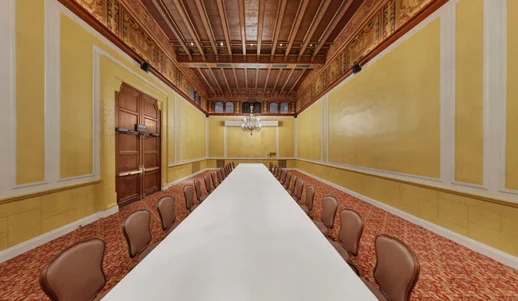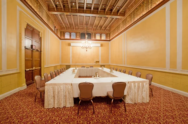 The Roman Room is one of nine distinctive mezzanine-level breakout rooms at the Biltmore, ideal for small banquets, executive meetings, intimate receptions, or symposiums. With approximately 1,100 square feet of space, this room features ornate Greco-Roman architectural details, including hand-painted beams, high coffered ceilings, and elegant chandeliers. Its classical charm and warm ambiance offer a unique setting that blends historic grandeur with a comfortable, versatile layout, perfect for gatherings that require both sophistication and privacy.