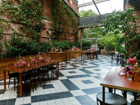 Garden Terrace offers a uniquely Brooklyn open-air courtyard experience, where ivy-covered brick walls create an urban oasis for up to 150 guests. Adjacent to the Main Event Hall, this versatile outdoor space features its own private Wythe Avenue entrance and seamlessly accommodates everything from corporate gatherings to celebratory receptions.