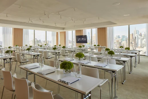Sophia offers an inspiring backdrop for meetings and events with panoramic northern skyline views featuring the Empire State Building. This versatile 1,650-square-foot space accommodates up to 175 guests and includes a prefunction area, built-in Air Media System, and 75" monitor for seamless presentations. With multiple configuration options from boardroom meetings to banquet receptions, Sophia adapts to your event needs while providing an unforgettable Manhattan setting.