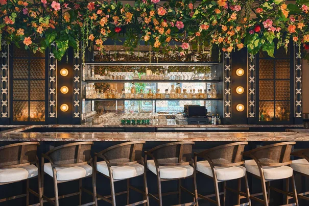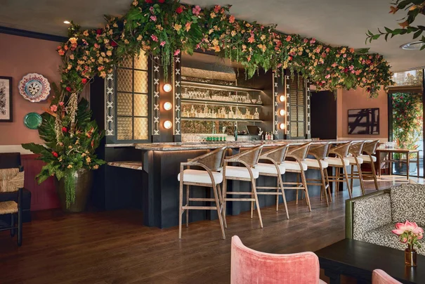 Bar Tontine combines sophisticated lounge seating with a custom bar that glows with amber light, creating an ideal atmosphere for cocktail receptions and social events. With south-facing views of Lower Manhattan and the East River through floor-to-ceiling windows, this space includes access to a wraparound terrace for additional outdoor entertaining options.