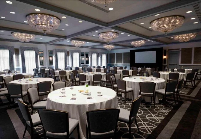 Ballroom North offers a versatile half of our Grand Ballroom, accommodating up to 300 guests with the flexibility to operate independently or combine with Ballroom South for larger events. This well-appointed space features crystal chandeliers and abundant natural light, making it ideal for corporate gatherings, celebrations, and social events of all sizes.