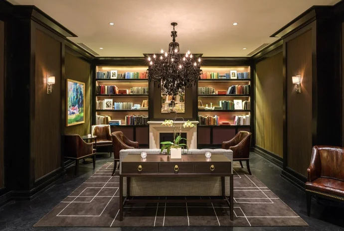 Library Bar offers an intimate retreat within The Rittenhouse, featuring floor-to-ceiling bookshelves and rich club-style seating. This smaller event space provides a distinguished atmosphere for exclusive gatherings of up to 25 guests, perfect for private receptions or corporate entertaining.
