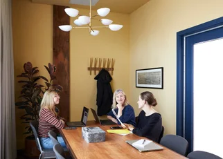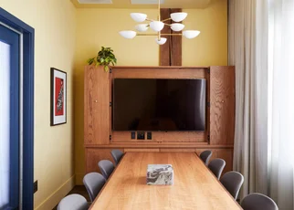10 person meeting room with plenty of natural lighting. Includes big screen TV you can plug right into with HDMI cord. Hox Box is filled with notepads, pens, pencils and other office supplies. White boards or flip charts available at no charge upon request. Access to The Pantry which includes all day coffee/tea/sodas and soda water. Light breakfast and PM snacks are also included.