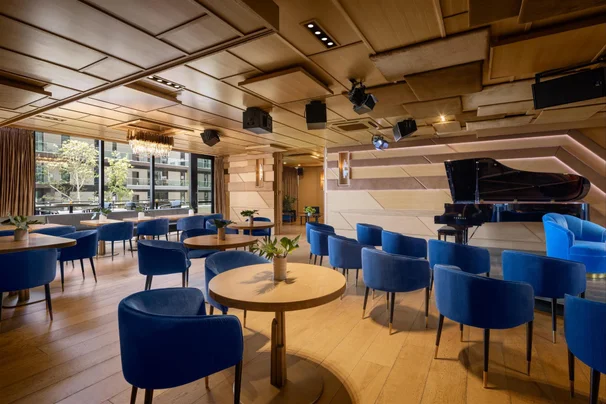 Music Venue transforms your event into an immersive experience with its grand piano as the centerpiece and professional sound system. This versatile space accommodates up to 150 guests and offers multiple configurations for concerts, presentations, and receptions.